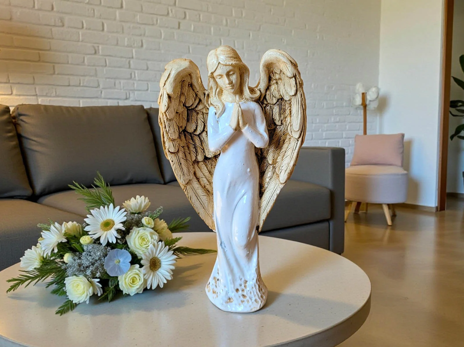 Anioł Stróż - biały -  18 x 9 cm figurka dekoracyjna gipsowa
