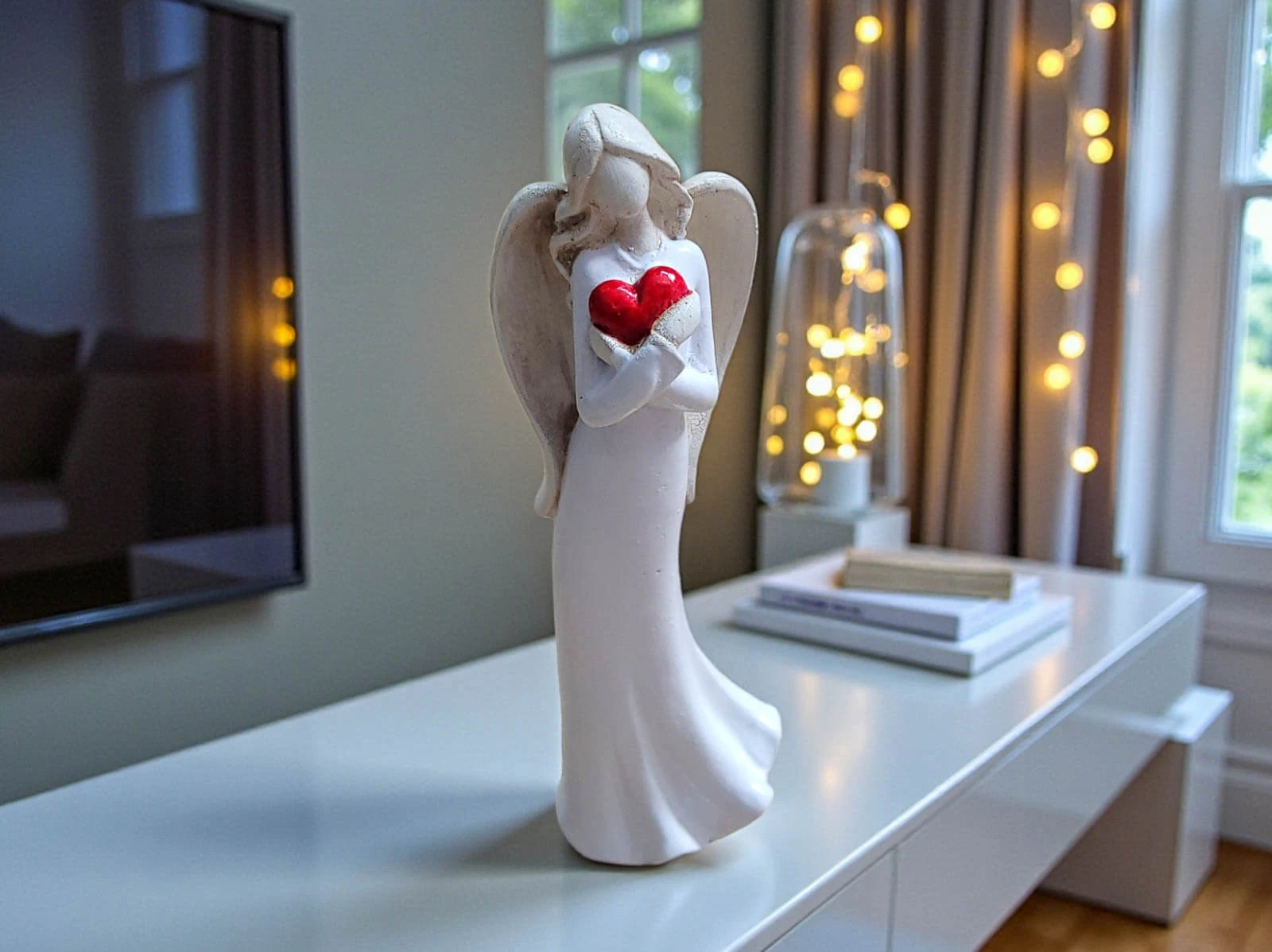 Aniołek Ayla z sercem - biały -  15 x 7.5 cm figurka dekoracyjna gipsowa