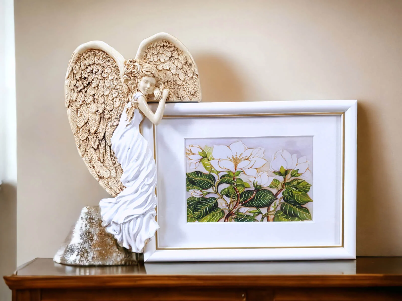 Skrzydła Anioła + ramka - wiszące -  30 x 40 cm figurka dekoracyjna gipsowa