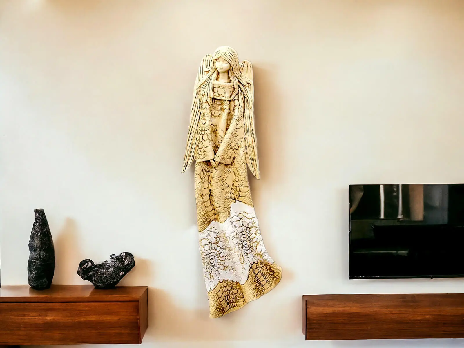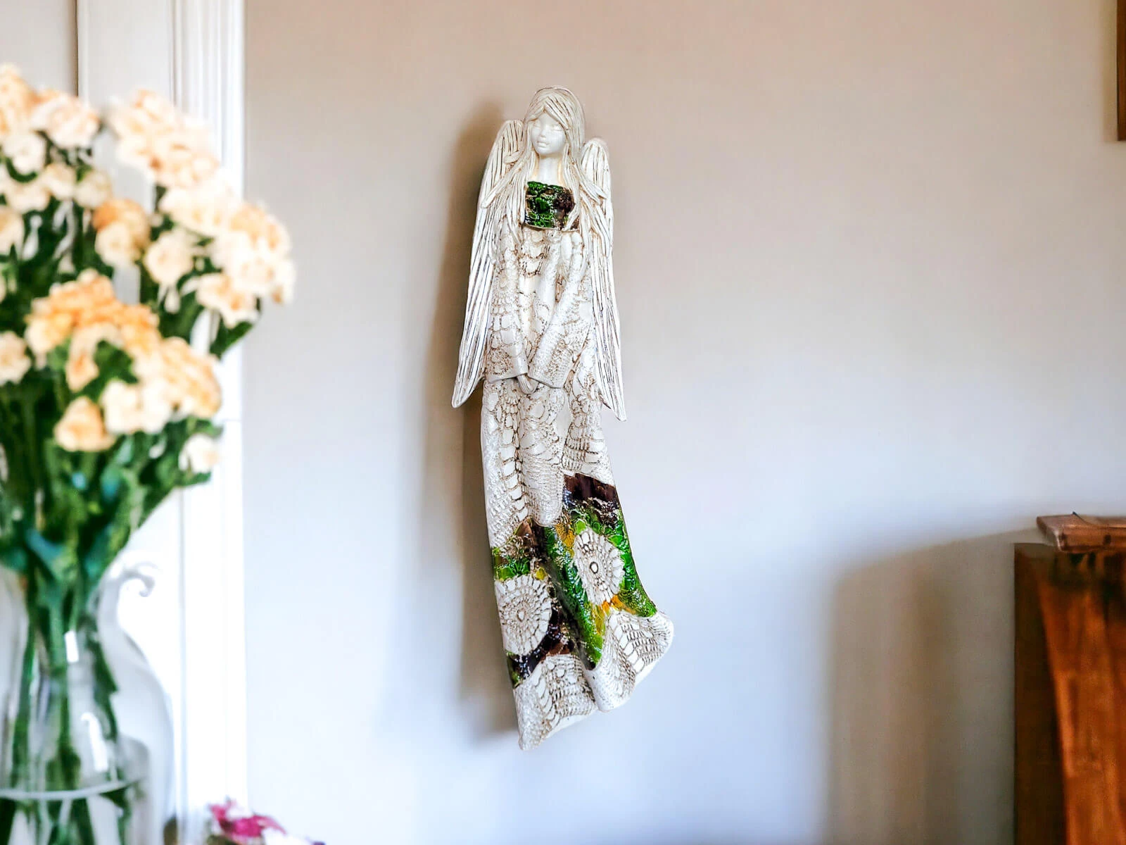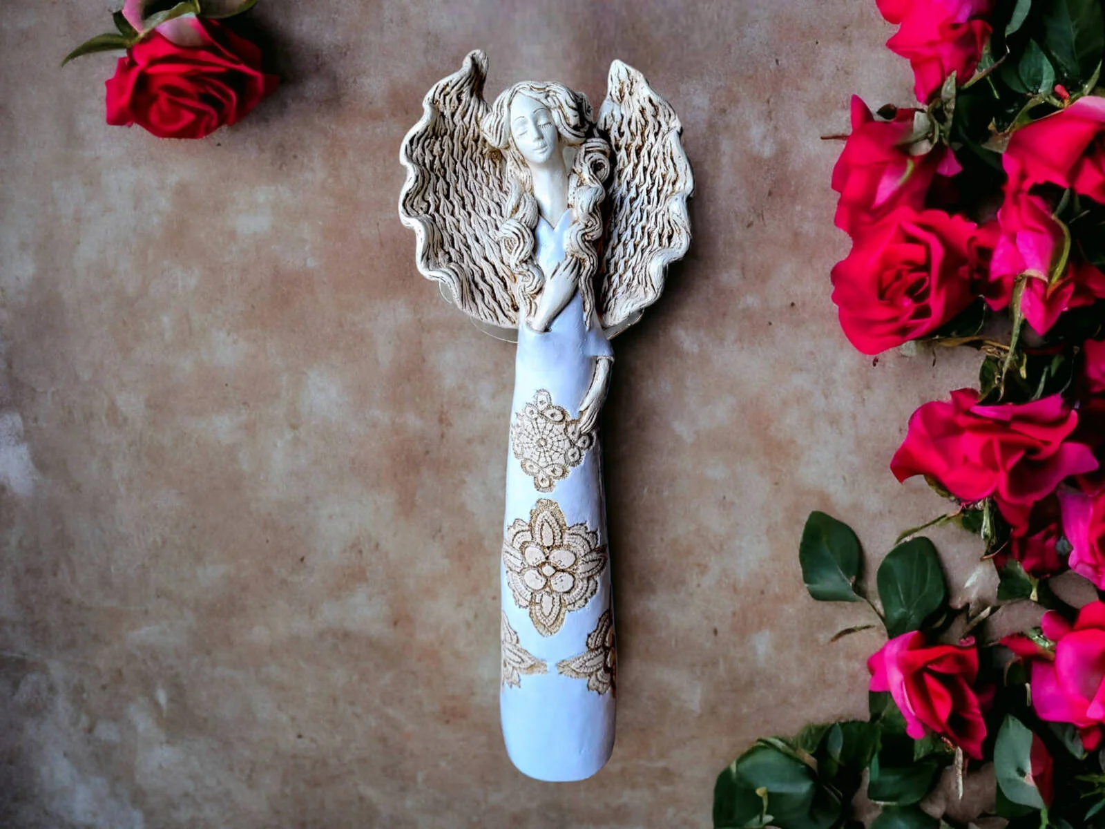 Przepiękny anioł, wspaniale prezentuje się na scianie. O takim marzyłam. Wrócę do Was zapewne nie raz bo są przeurocze na prezent. A zabezpieczenie w paczce to po prostu mistrzostwo. Dziękuję 😊