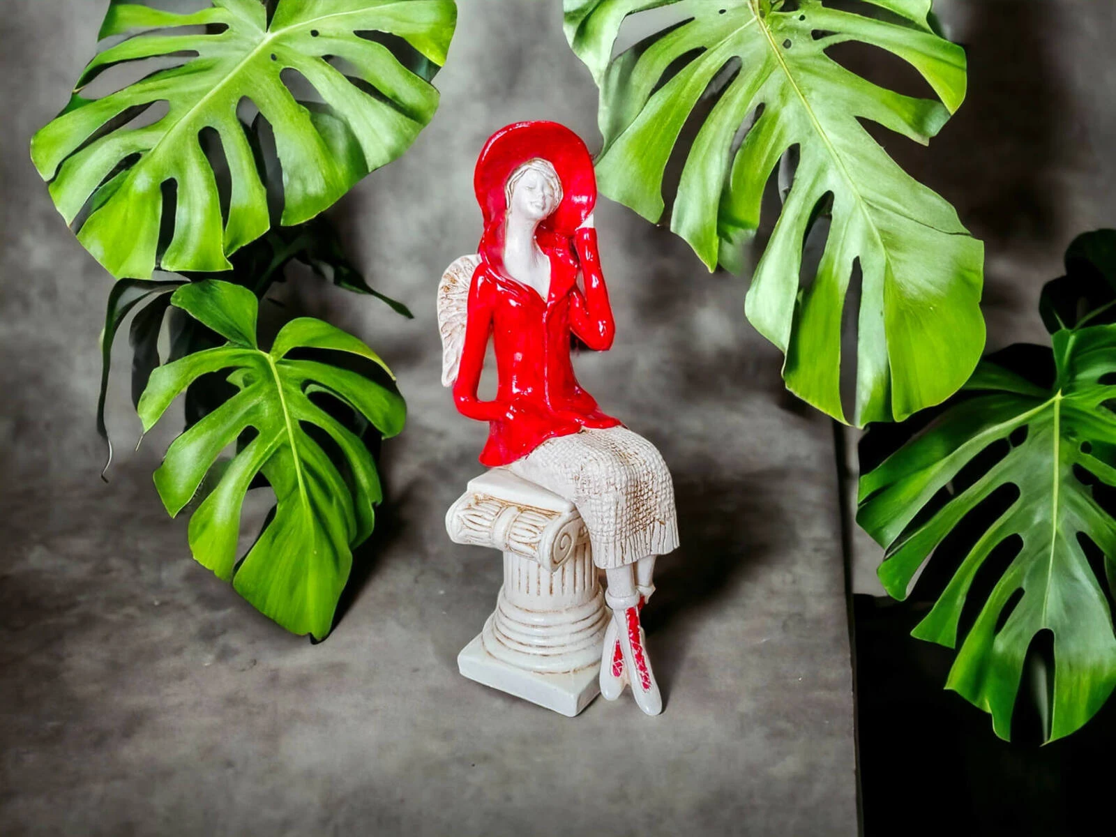 Aniołek Megan - czerwony - 20 x 9 cm figurka dekoracyjna gipsowa