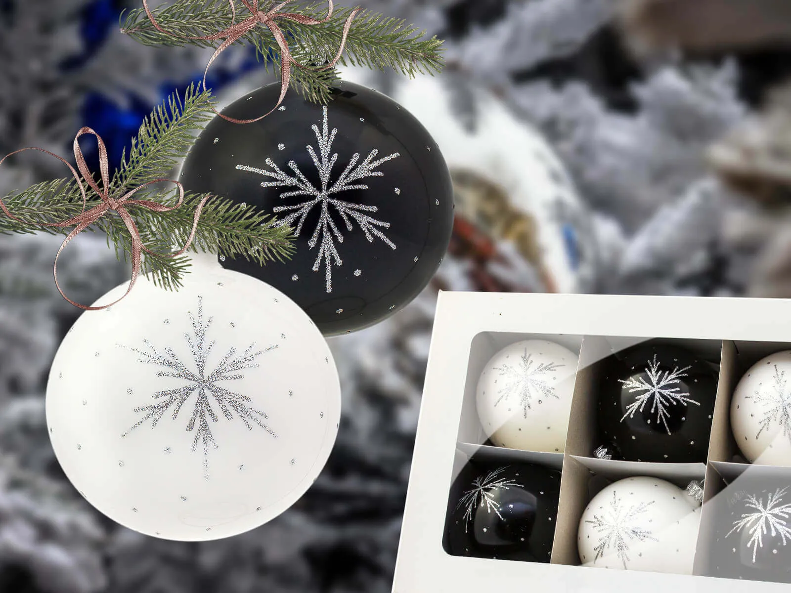 Bombki czarny błysk - 100 mm bombki choinkowe szklane 6 szt