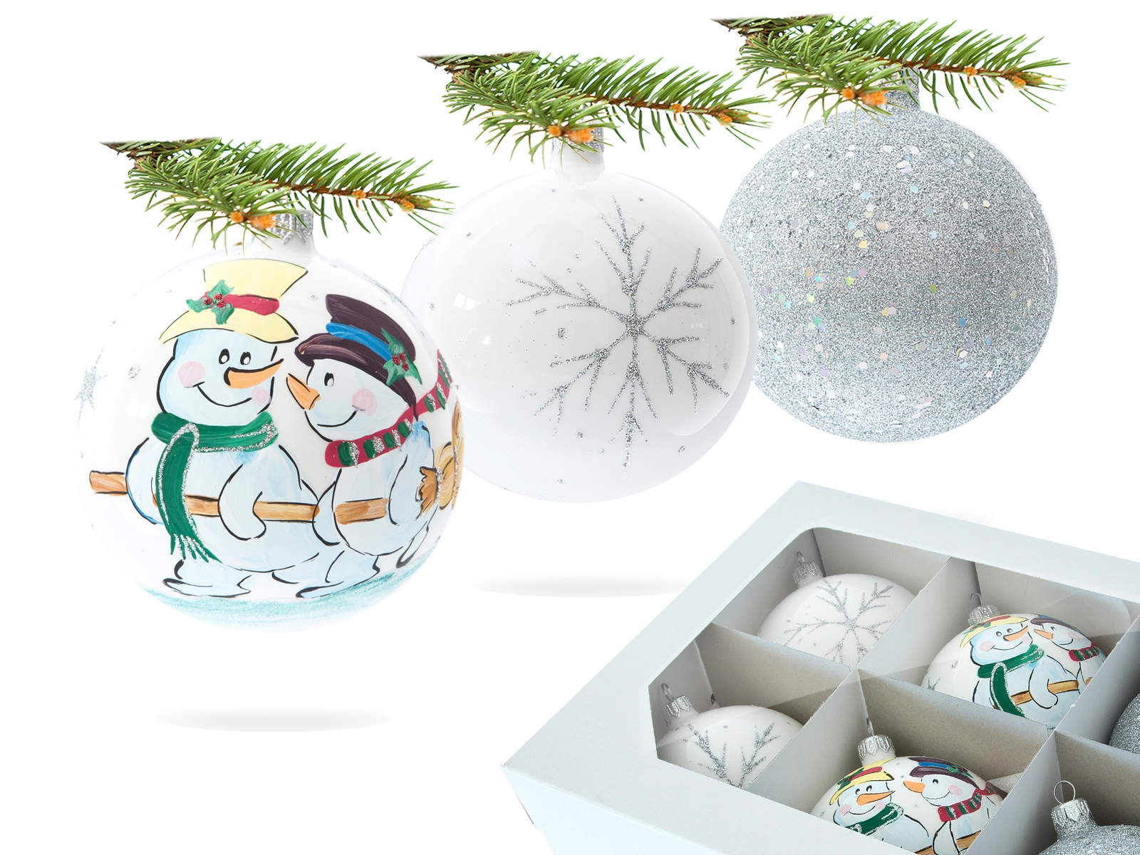 Bombki białe bałwanki kula mix  -  100 mm bombki choinkowe szklane 6 szt