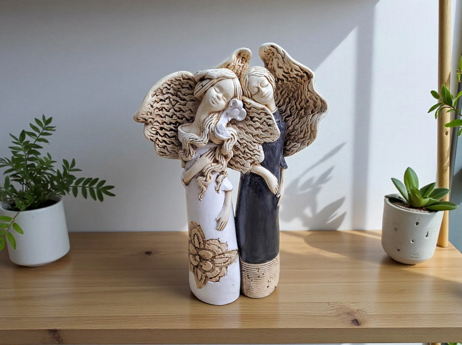 Anioł Romeo & Juliet - biało czarne -  50 x 30 cm figurka dekoracyjna gipsowa