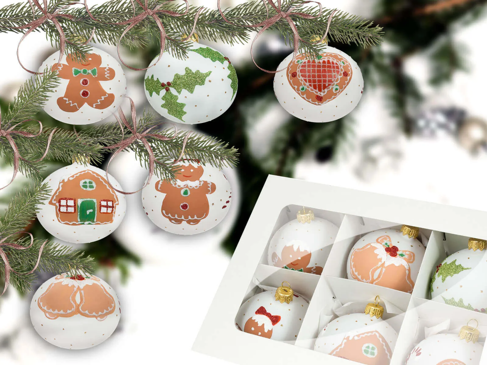 Piernikowy mix na kredzie - 80 mm bombki choinkowe szklane 6 szt
