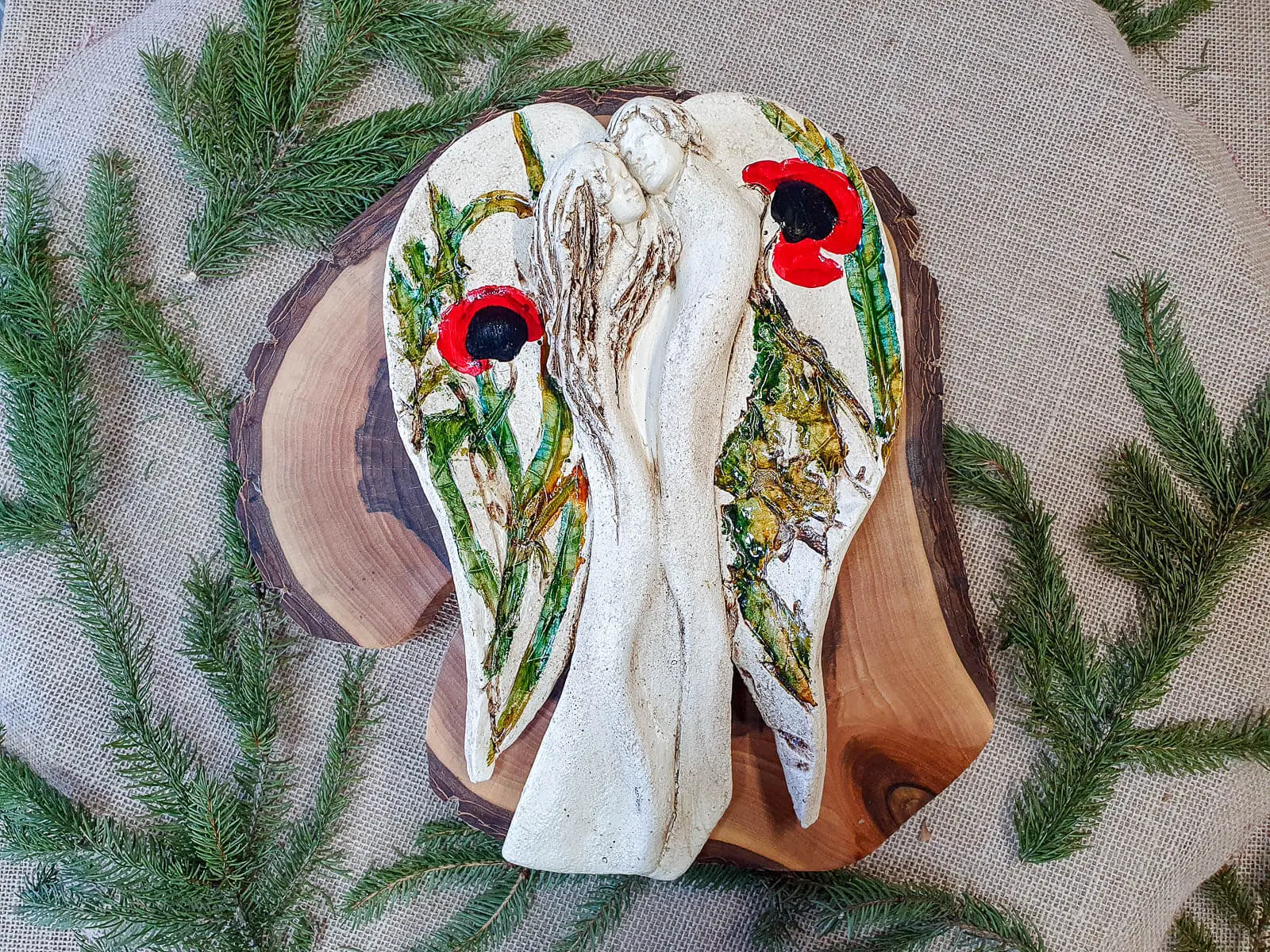 Zakochane Anioły + ramka - wiszące białe całe - 35 x 21 cm figurka dekoracyjna gipsowa