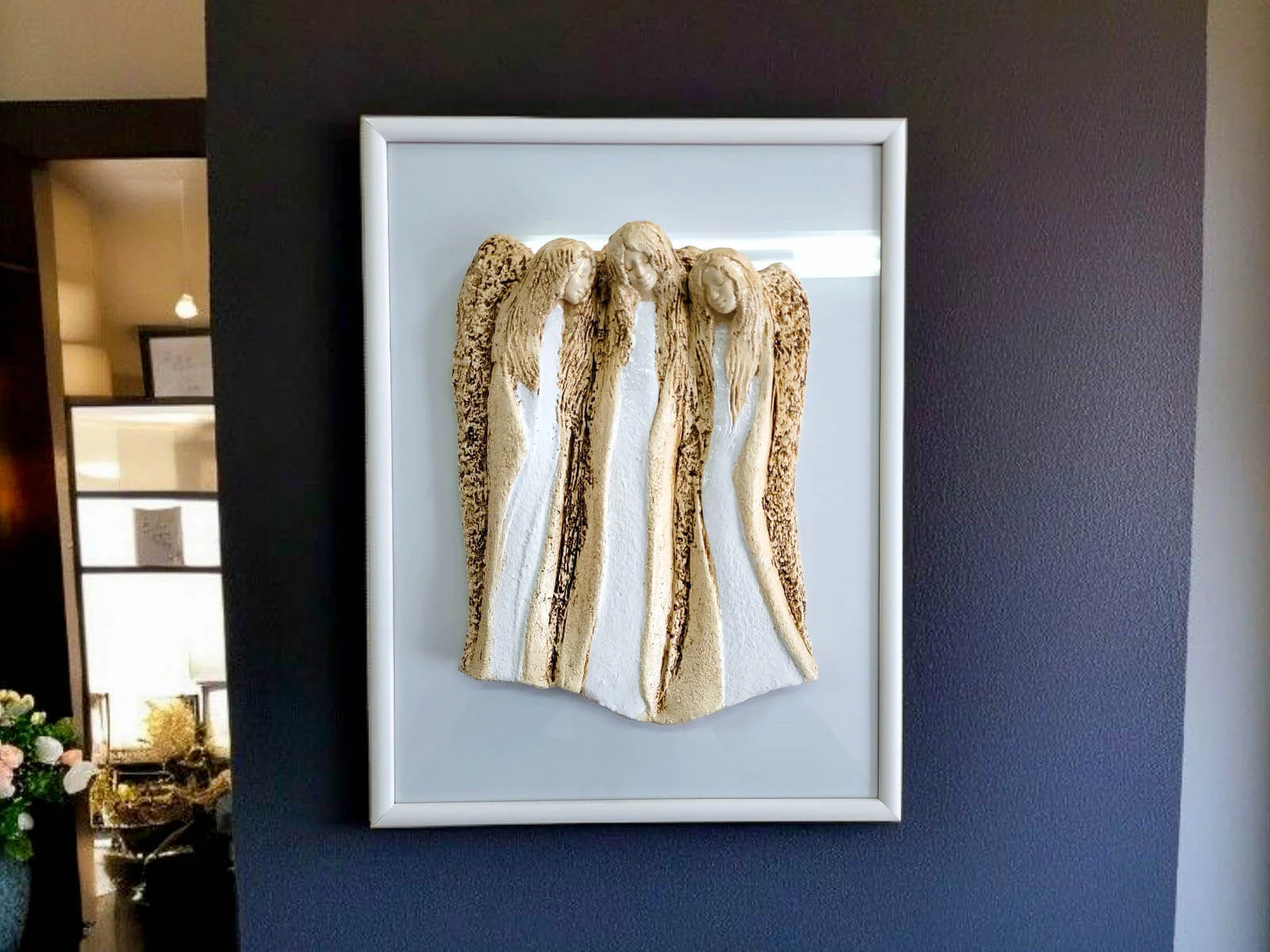 Anioły Wiara Nadzieja Miłość + ramka - białe -  28 x 20 cm figurka dekoracyjna gipsowa