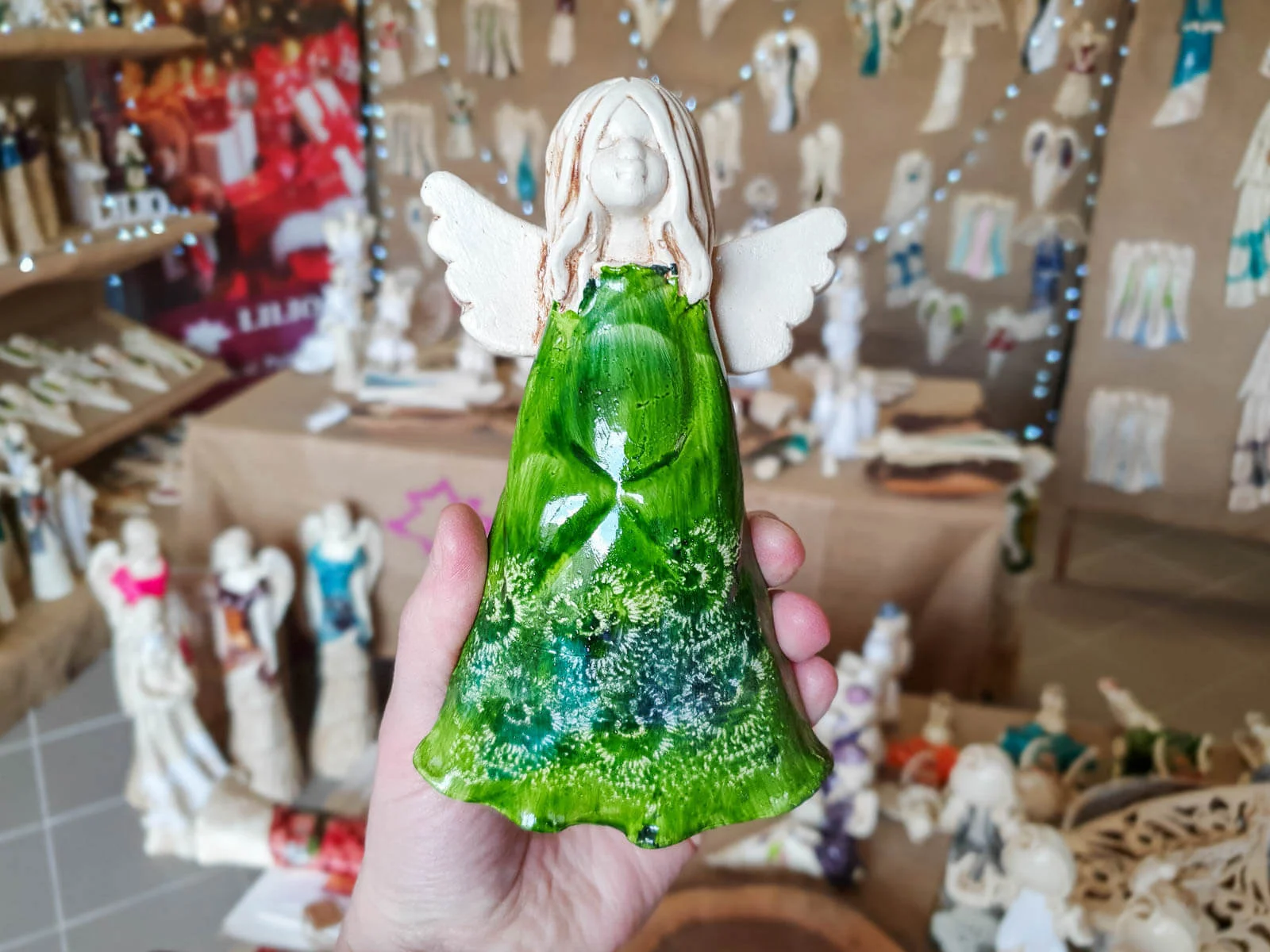 Piękny anioł, który roztacza zieloną barwą majestatyczny spokój.