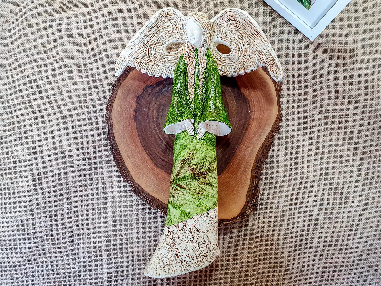 Anioł Clara Art Leaf - zielona -  40 x 28 cm figurka dekoracyjna gipsowa
