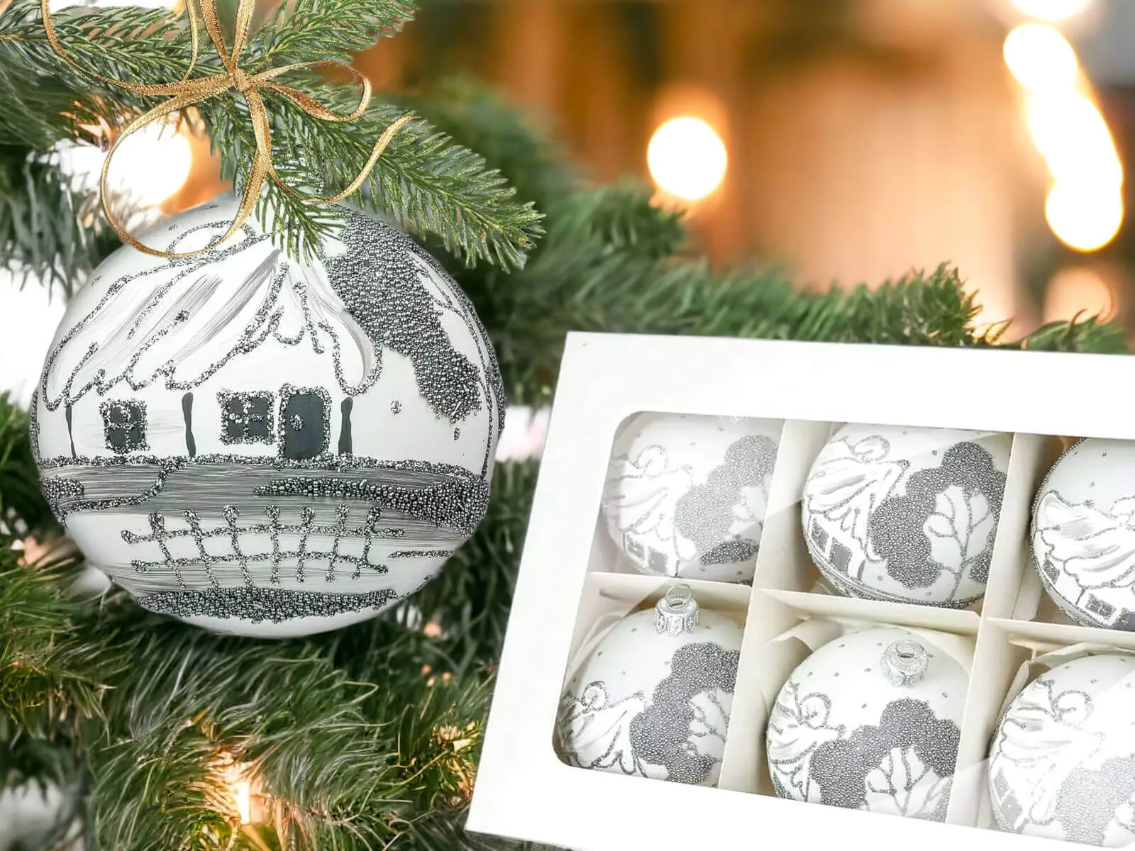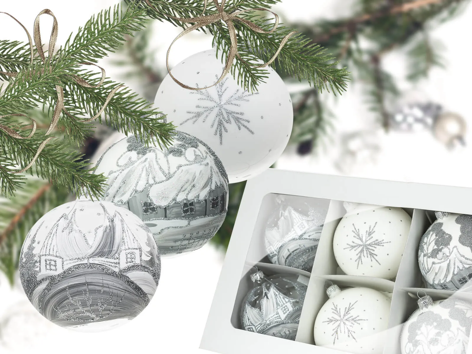 Bombki mix chatki śnieżynka - 100 mm bombki choinkowe szklane 6 szt