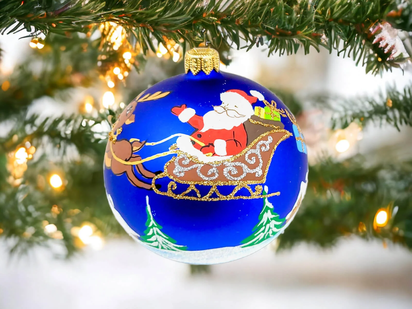 Mikołaj z Reniferem na granacie -  bombka choinkowa szklana