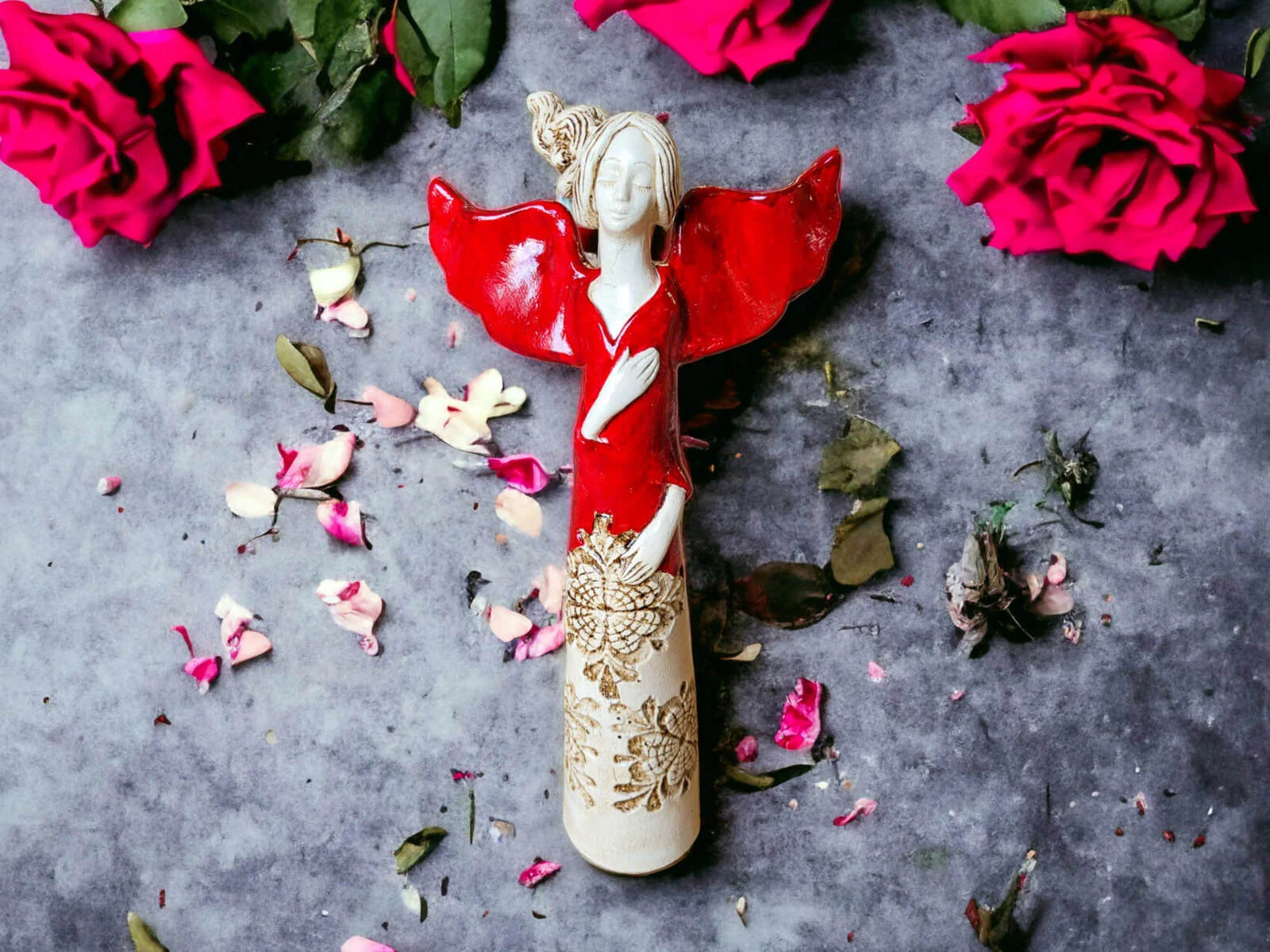 Anioł Celine - czerwony -  35 x 18 cm figurka dekoracyjna gipsowa