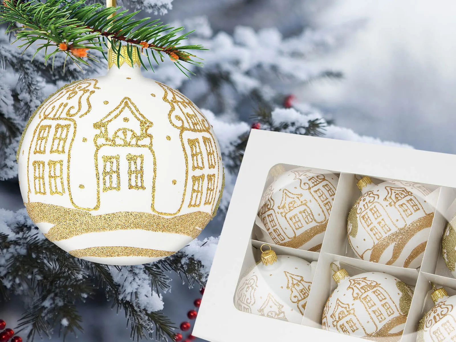 Bombki złote chatki wanilia -  100 mm bombki choinkowe szklane 6 szt