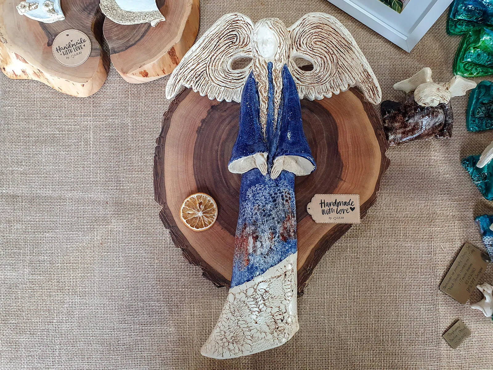Anioł Clara Art - granatowy -  40 x 28 cm figurka dekoracyjna gipsowa