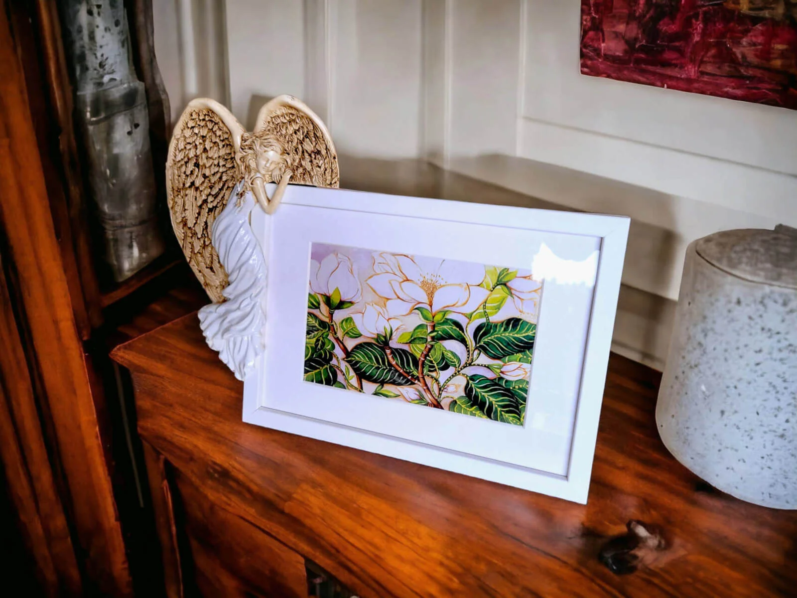 Andrea + Ramka Prosta - biała lewa - 19 x 11 cm figurka dekoracyjna gipsowa