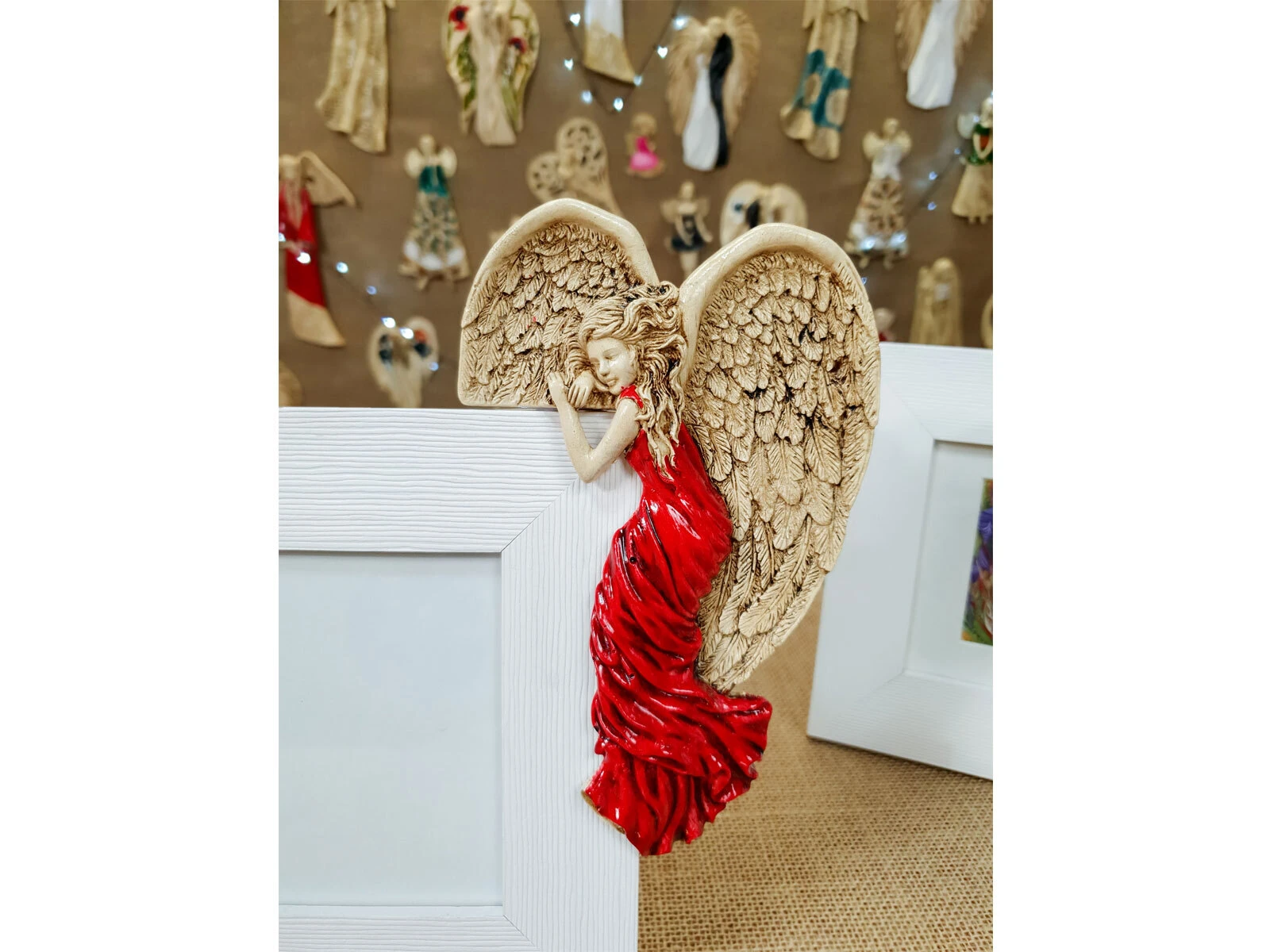 Anioł Andrea + Ramka - czerwony prawy -  19 x 11 cm figurka dekoracyjna gipsowa