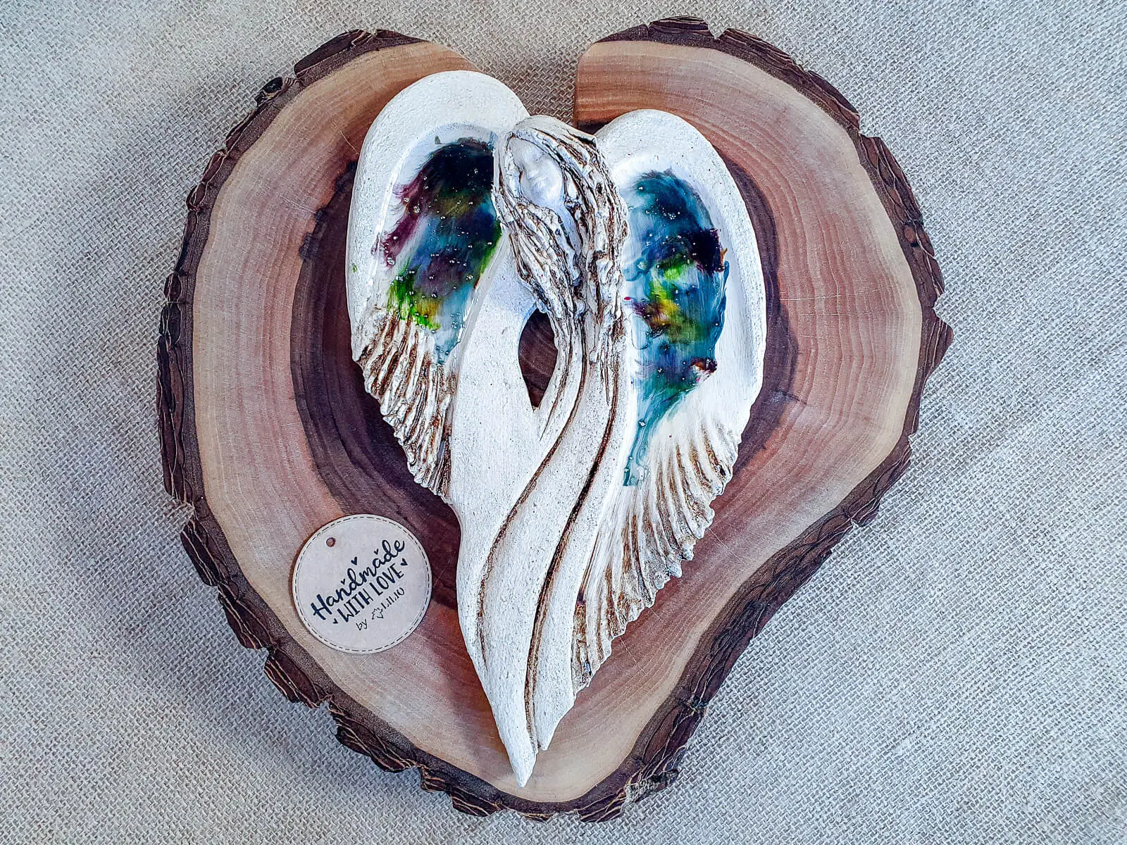Aniołek był zakupiony na prezent dla babci. Wywołał ogrom takiego dobrego wzruszenia poczucia miłości i wdzięczności. Anioł jest piękny i pięknie został też przyjęty ;) dodatkowo kolorystyka jest tak zgrana że pasuje do wielu wnętrz ;)