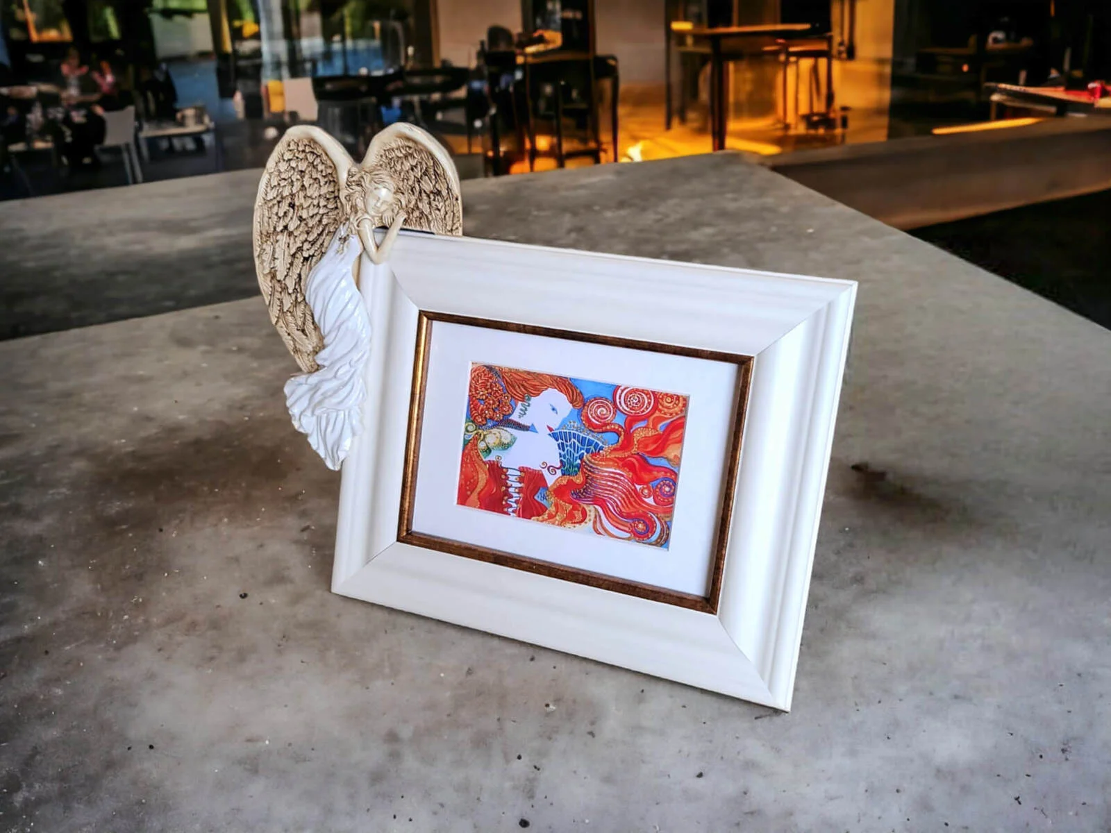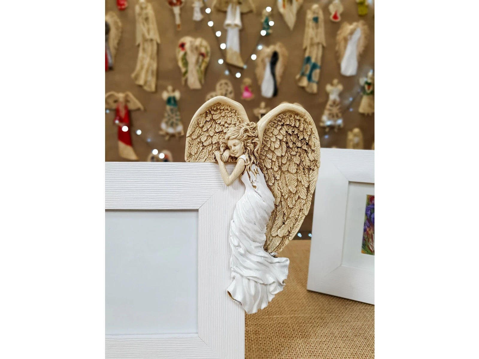 Anioł Andrea + Ramka - biały prawy - 19 x 11 cm figurka dekoracyjna gipsowa