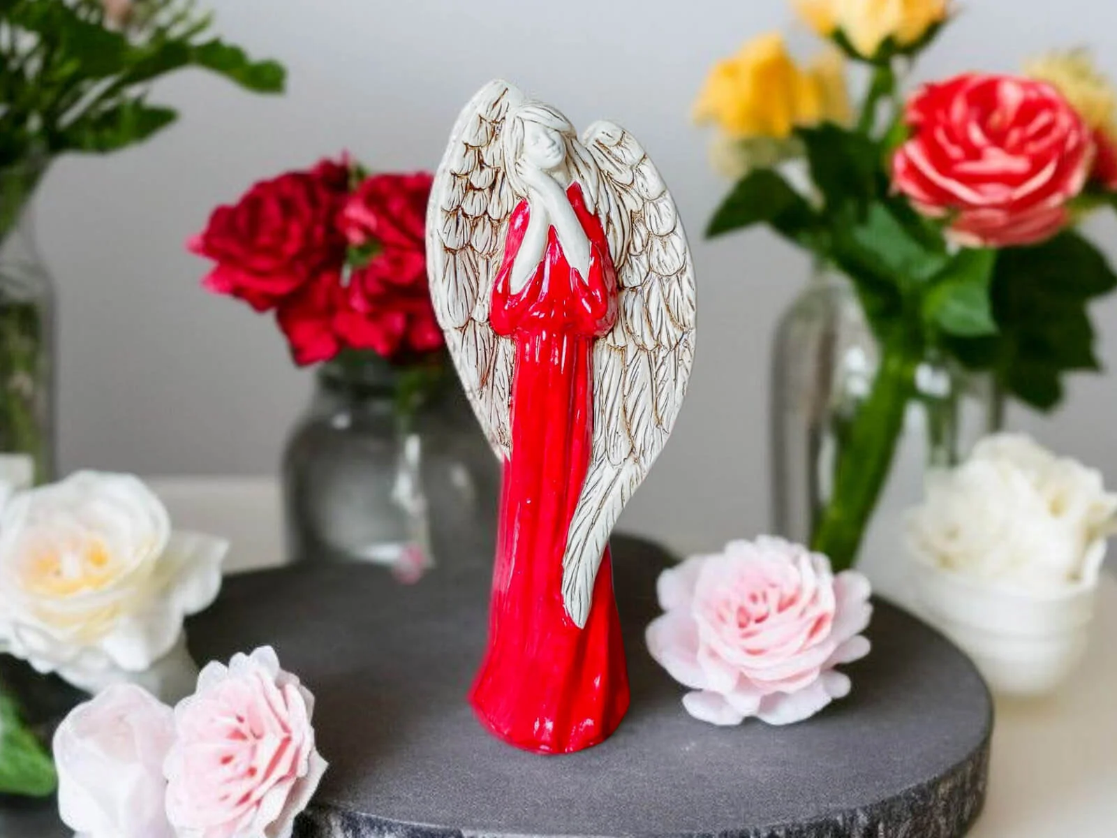 Miłujące Anioły - czerwono szare -  37 x 12 cm figurka dekoracyjna gipsowa