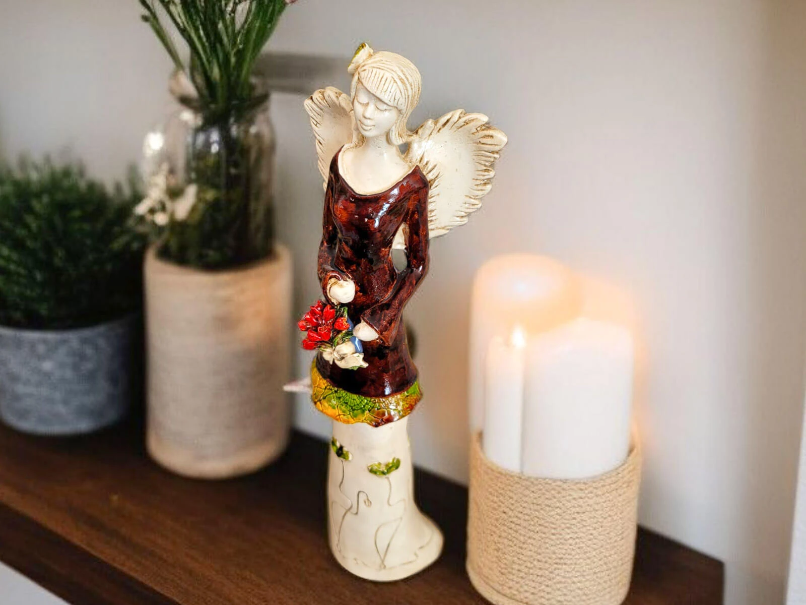 Anioł Mia - brąz -  40 x 16 cm figurka dekoracyjna gipsowa