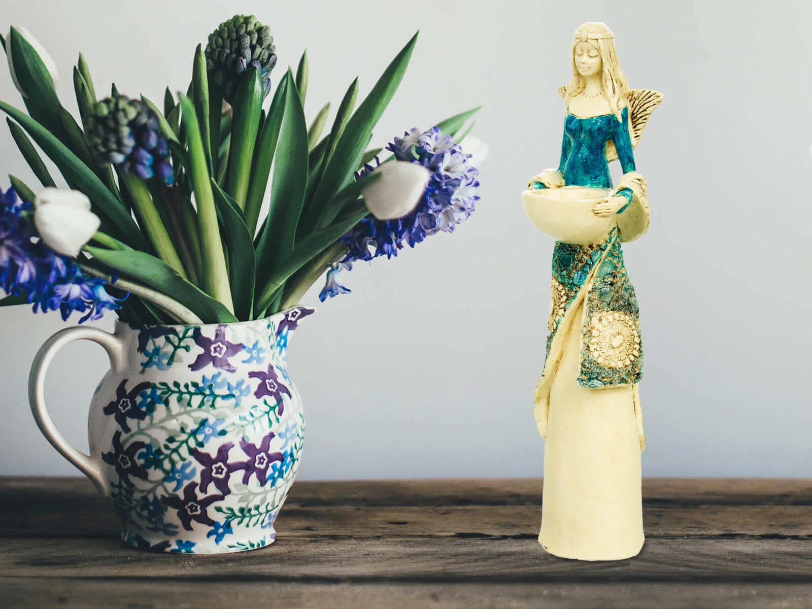 Anioł Anna - turkus -  35 x 15 cm figurka dekoracyjna gipsowa