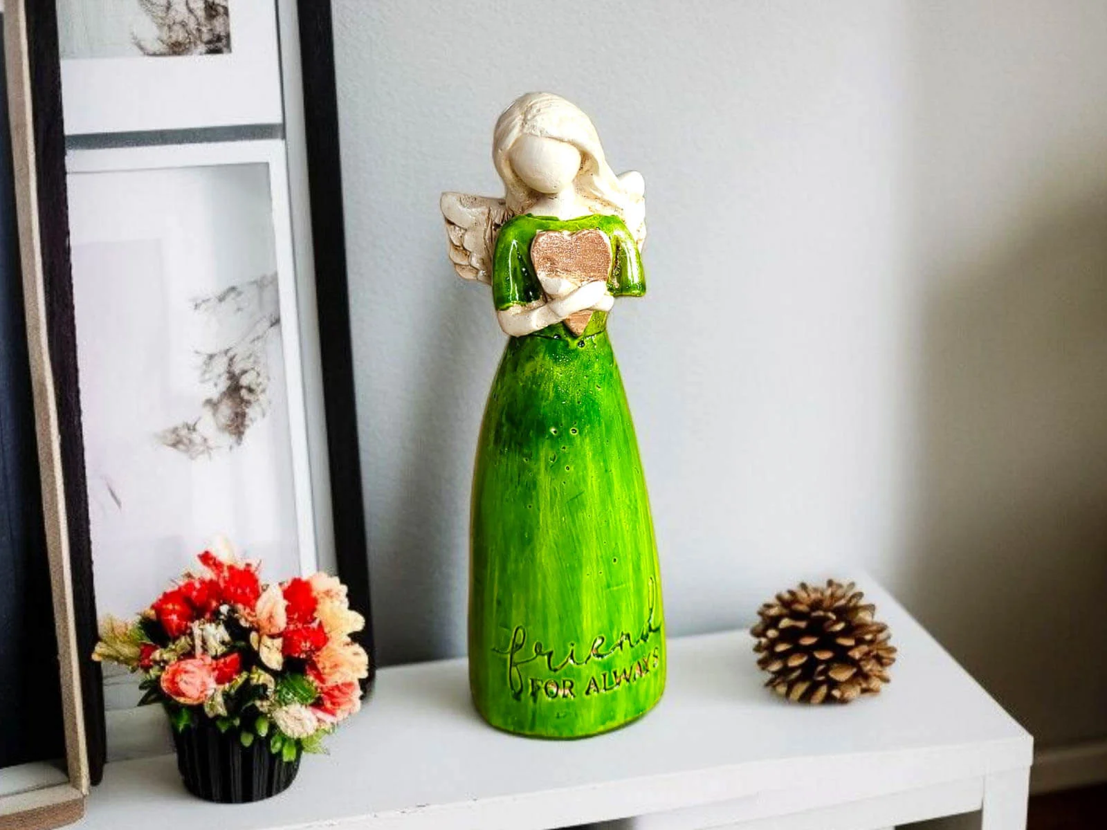 Aniołek z sercem - zielony - 15 x 7.5 cm figurka dekoracyjna gipsowa