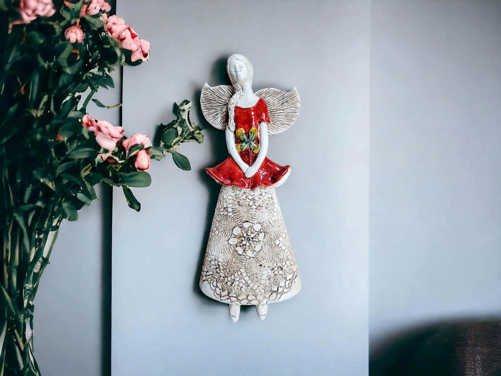 Anioł Margaret - czerwony -  32 cm figurka dekoracyjna gipsowa