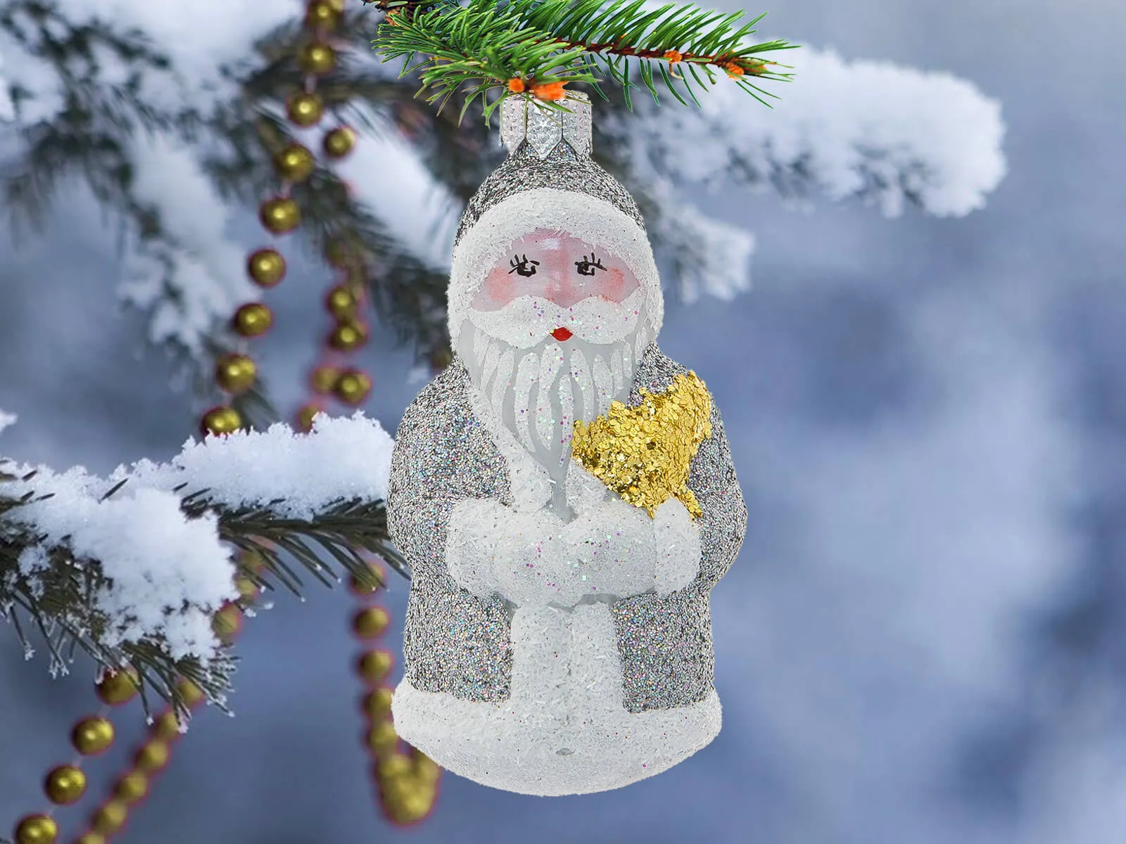 Mikołaj srebrny -  bombki choinkowe szklane 1 szt