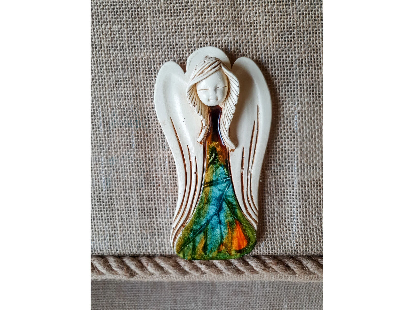 Anioł Olivia - pomarańcz - 32 x 15 cm figurka dekoracyjna gipsowa