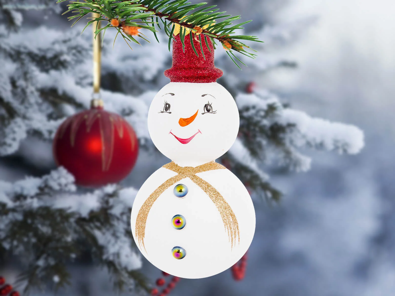 Bałwanek Olaf złoty -  17 x 5 cm bombka choinkowa szklana 1 szt
