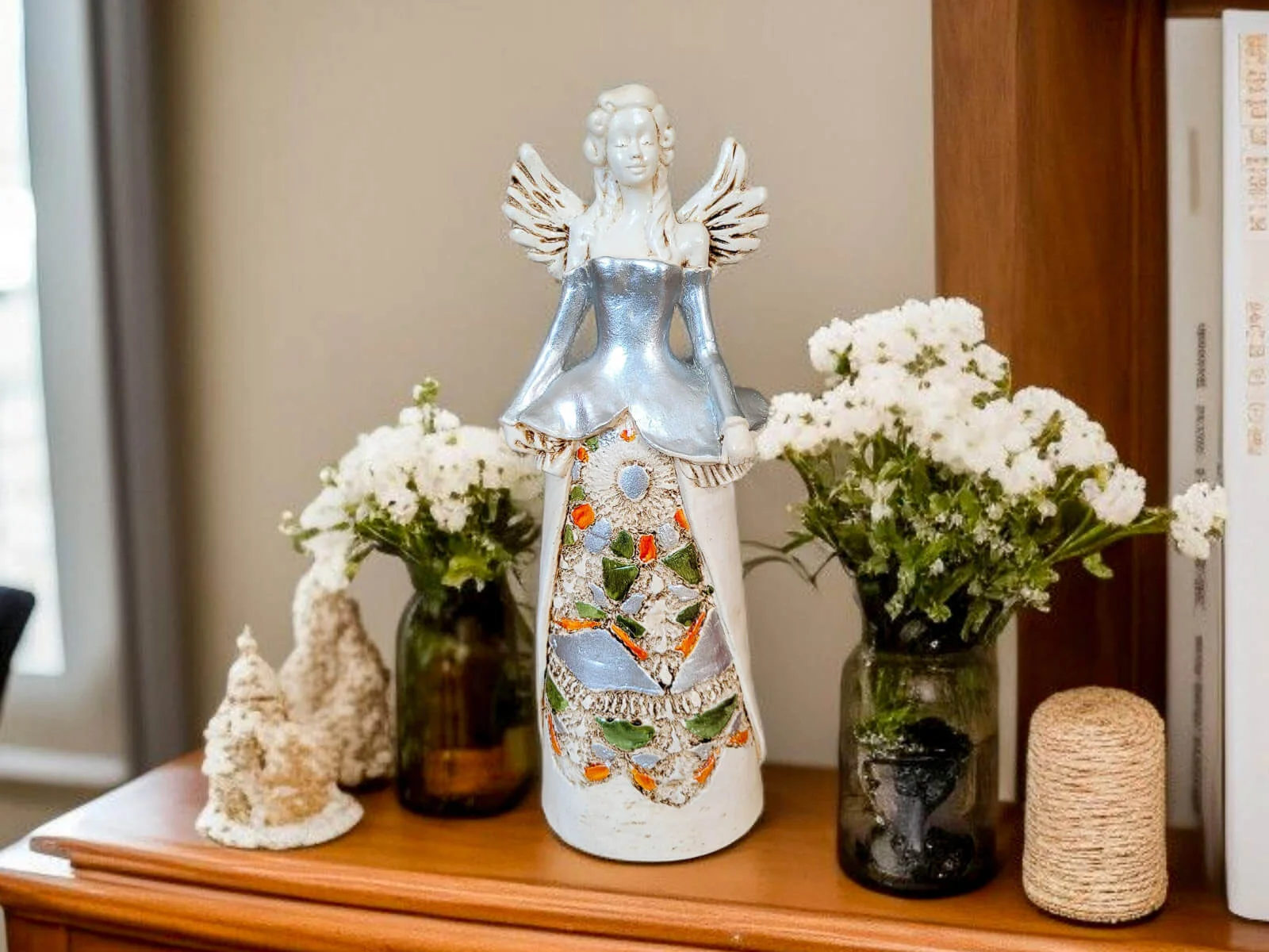 Anioł Anna - srebrny -  35 x 15 cm figurka dekoracyjna gipsowa