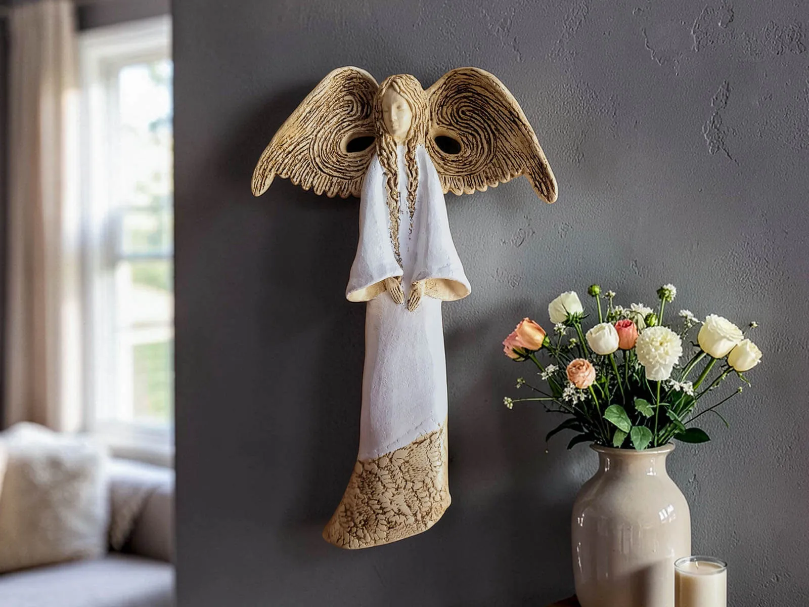 Anioł Charlotte - biały - 32 x 15 cm figurka dekoracyjna gipsowa