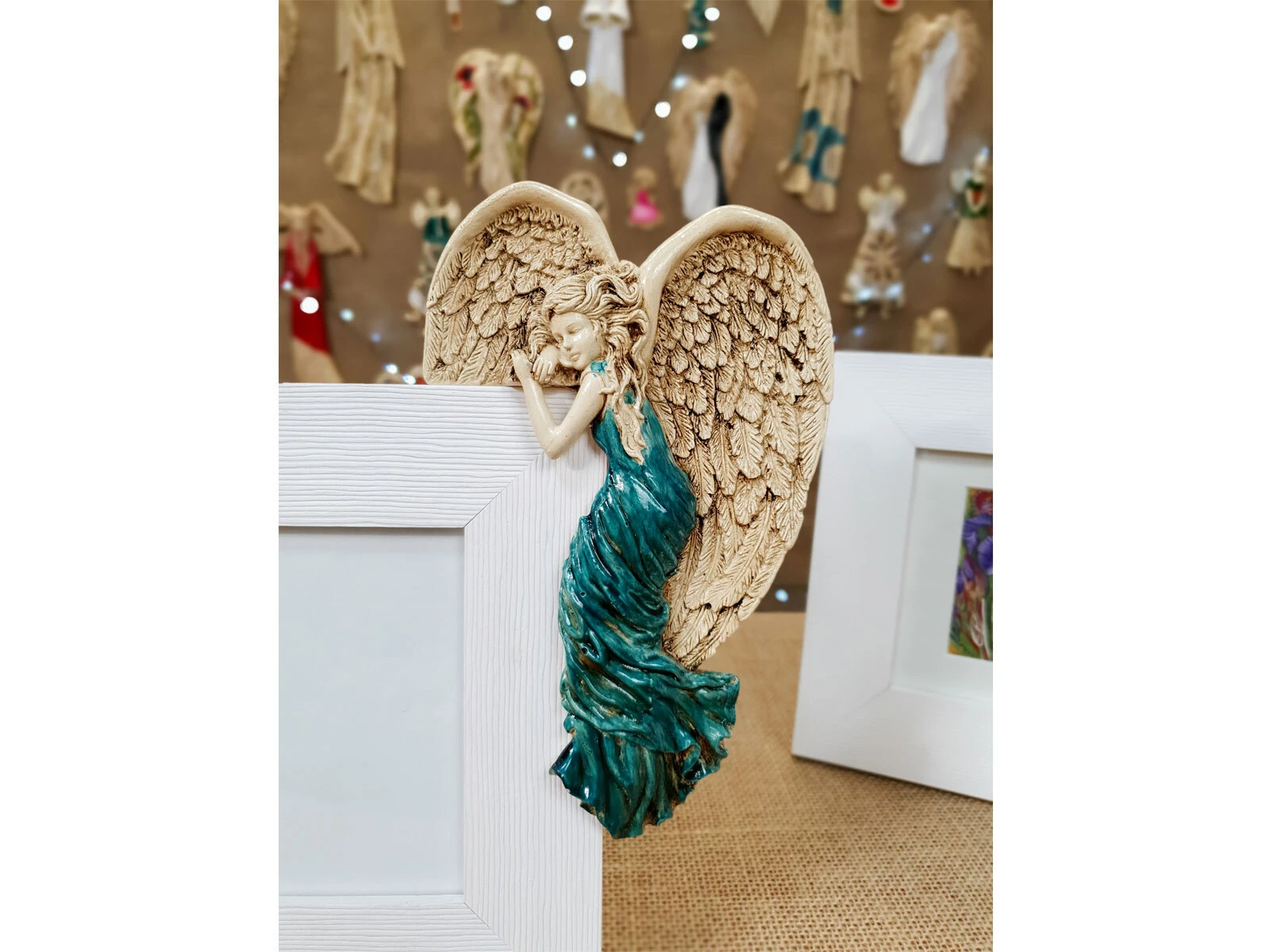 Anioł Clara - zielona -  40 x 28 cm figurka dekoracyjna gipsowa