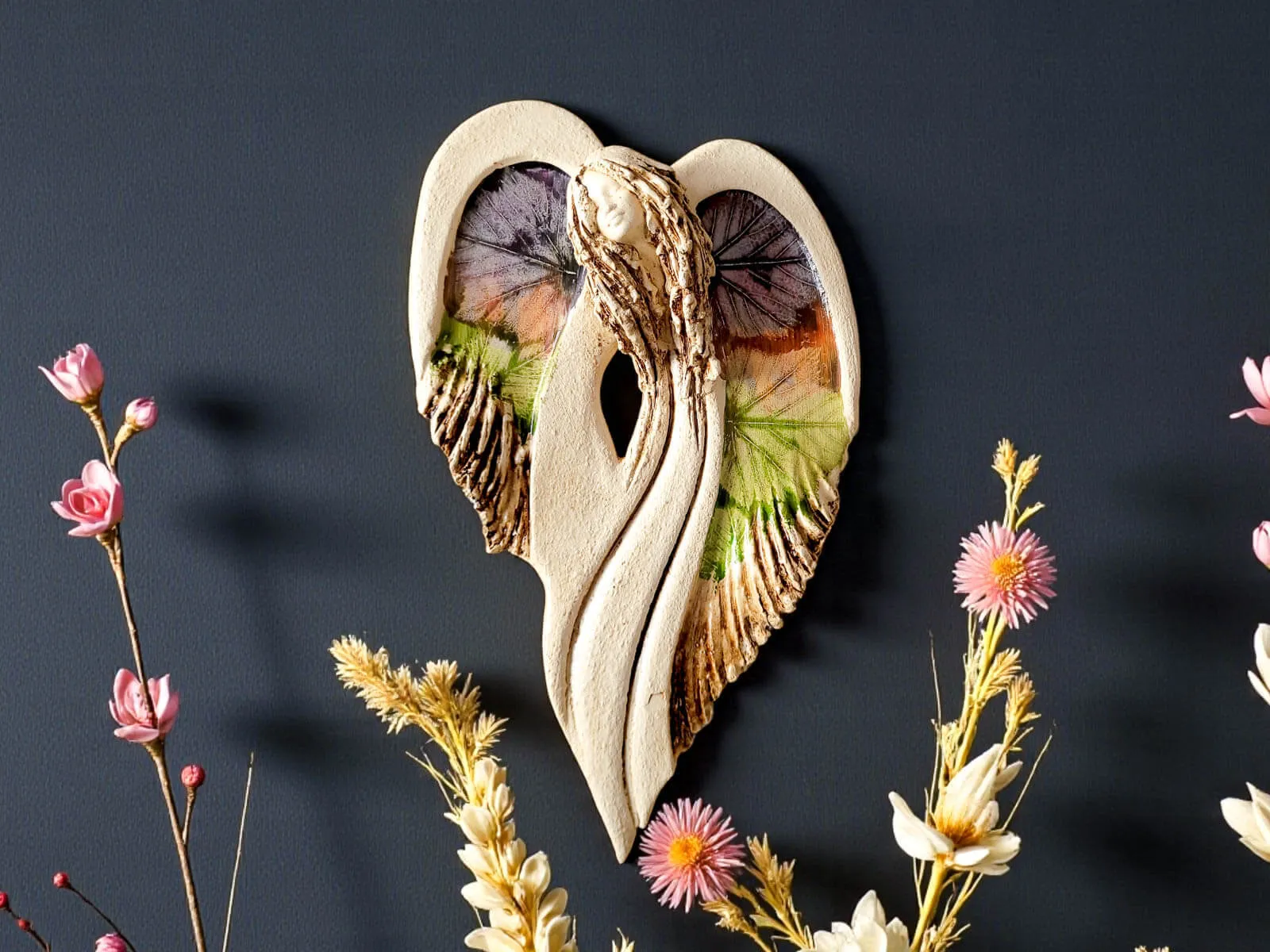 Anioł z Sercem - beżowy -  35 x 15 cm figurka dekoracyjna gipsowa