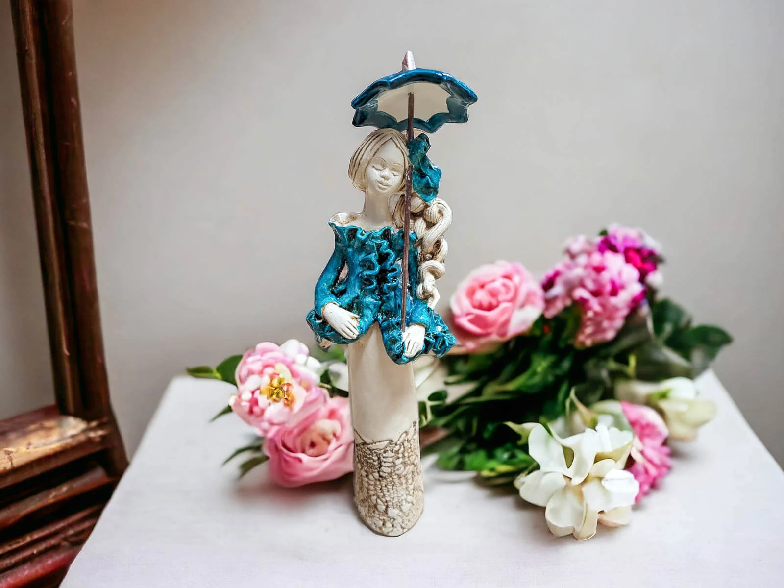 Anioł Konstancja - turkus -  32 x 10 cm figurka dekoracyjna gipsowa