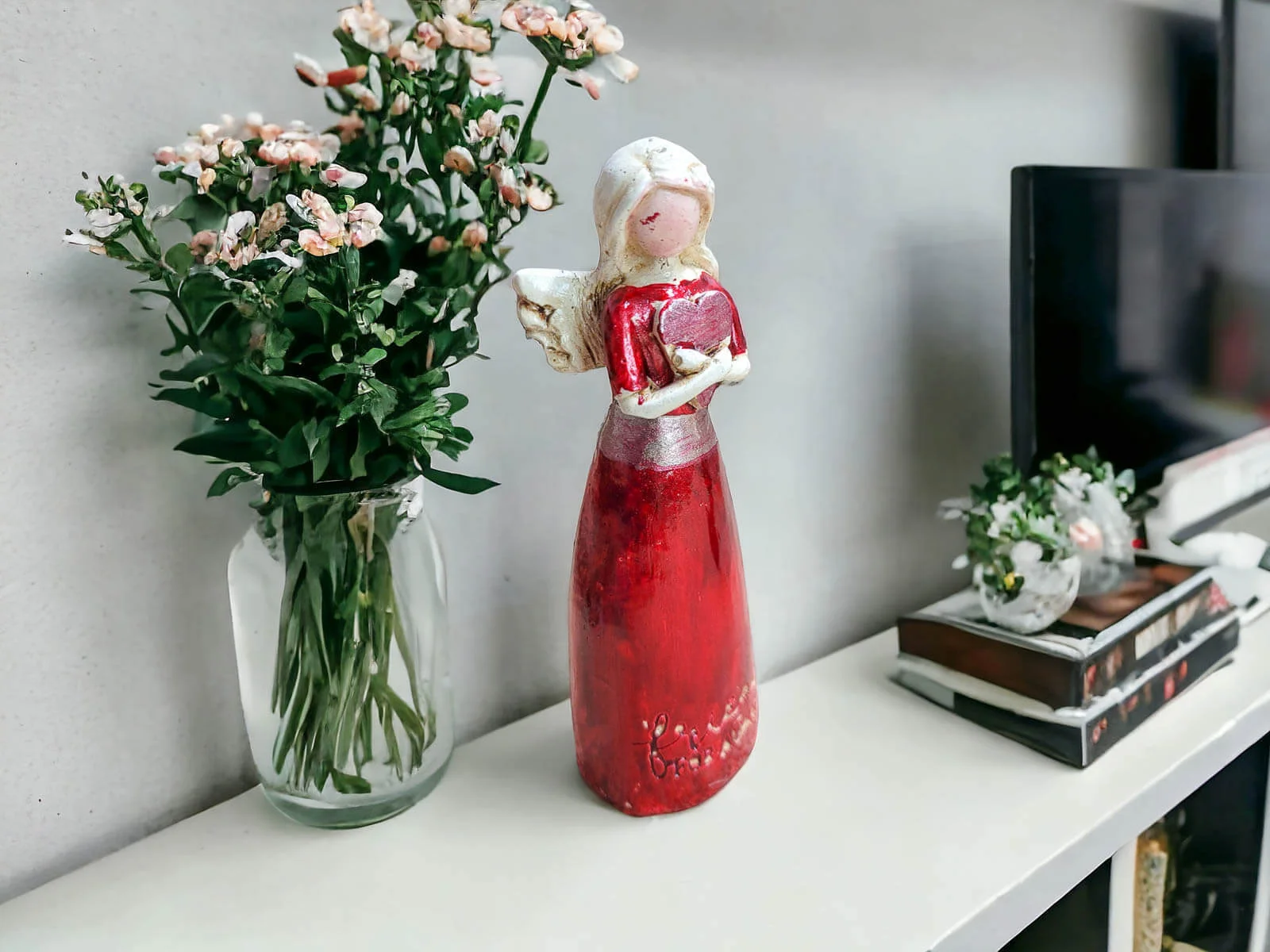 Aniołek z sercem - czerwony - 22 x 9 cm figurka dekoracyjna gipsowa