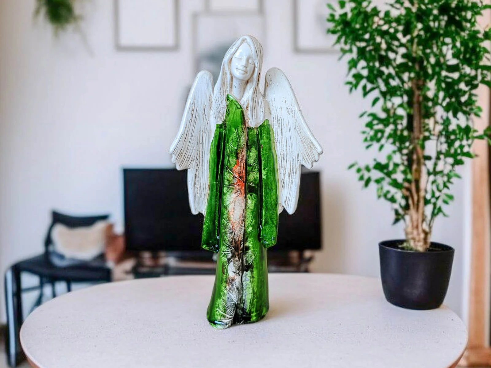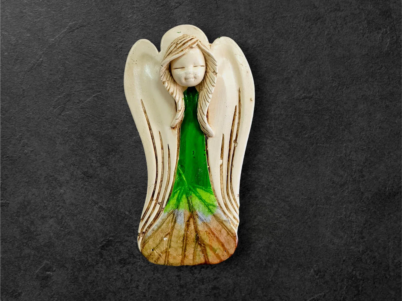 Anioł Julia Art Leaf - zielony -  27 x 14 cm figurka dekoracyjna gipsowa