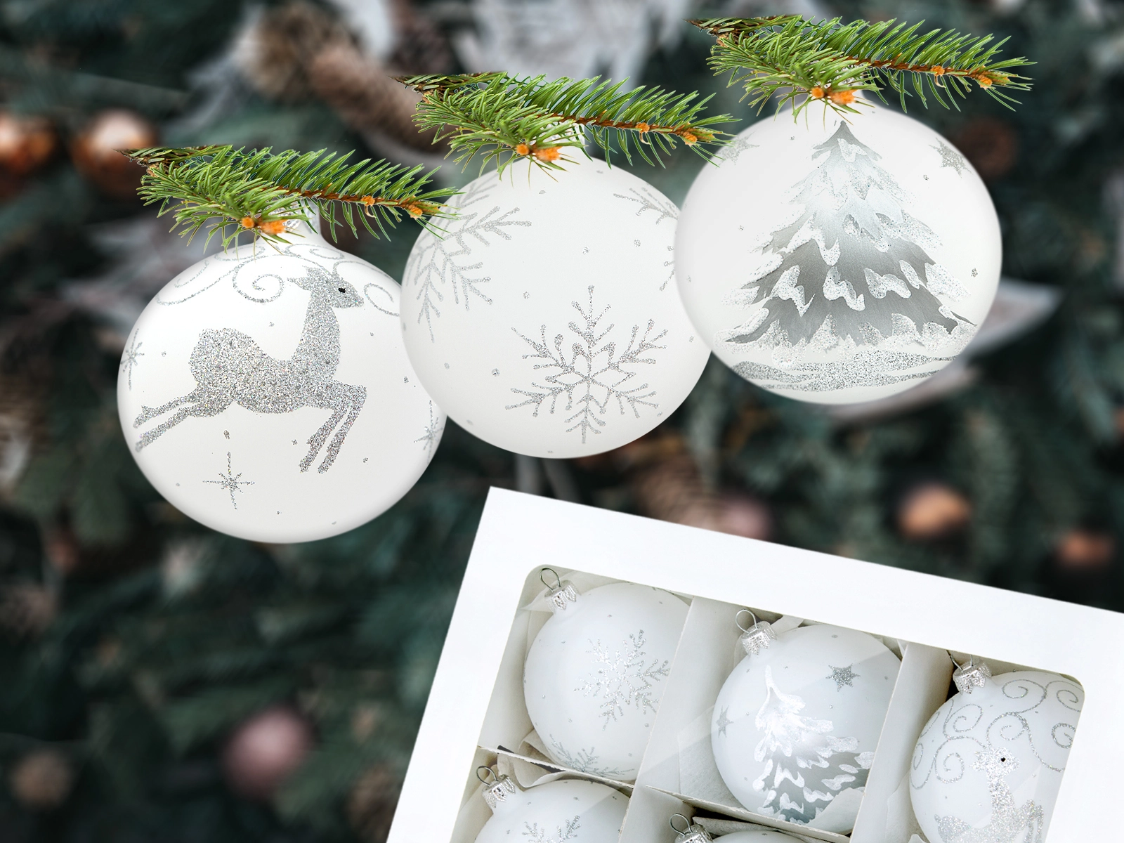 Bombki srebrne jelonki śnieg biały  mix -  100 mm bombki choinkowe szklane
