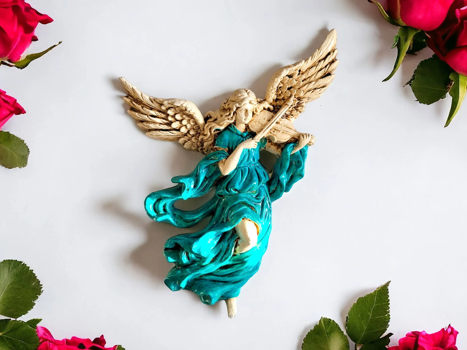 Anioł ze Skrzypcami - turkus -  25 x 33 cm figurka dekoracyjna gipsowa