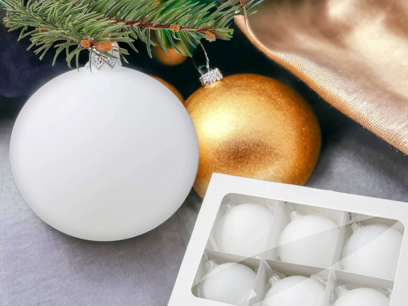 Bombki biała kreda - 80 mm bombki choinkowe szklane 6 szt