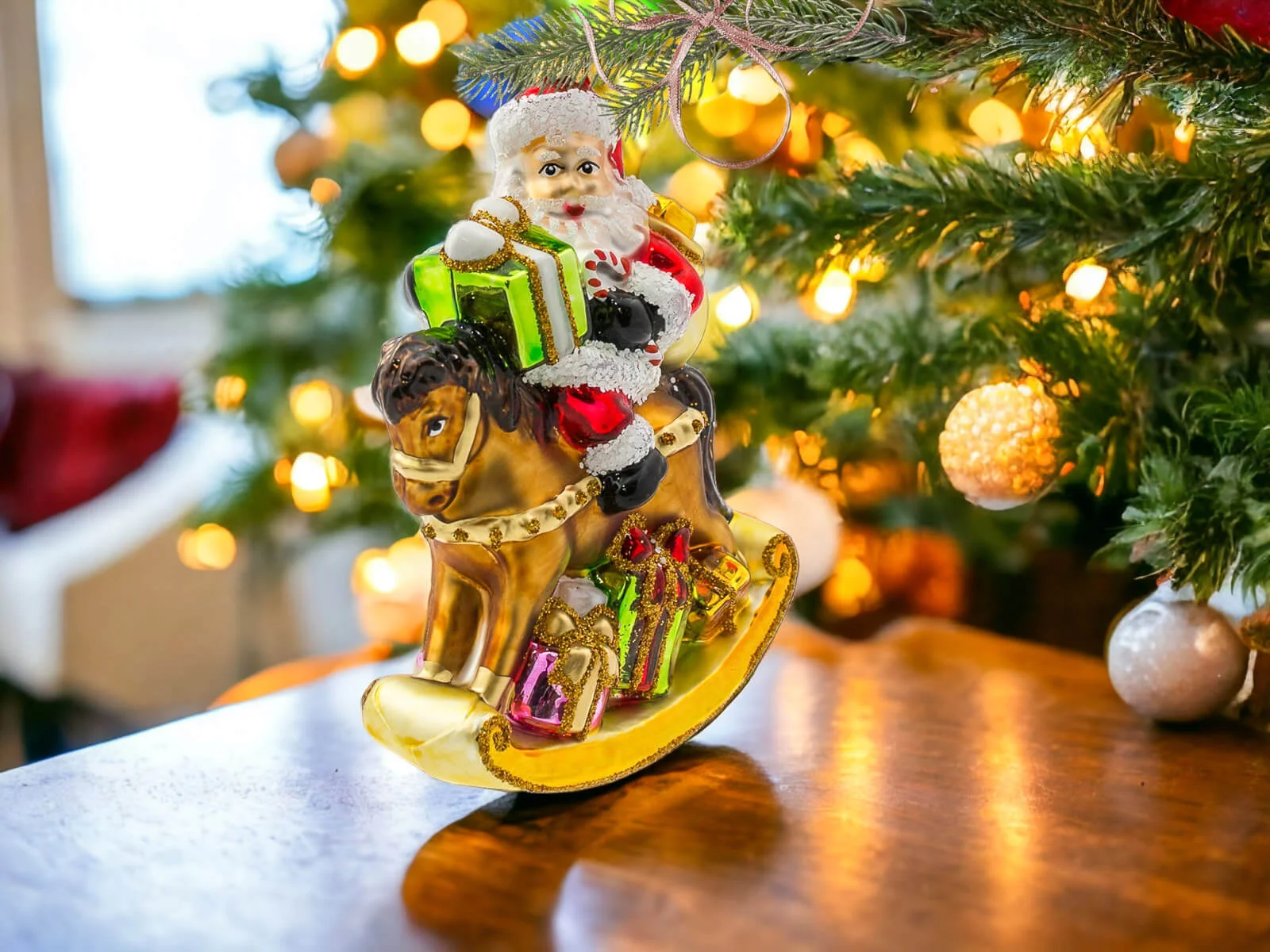 Mikołaj na koniku - dekoracja kształtka - 14 x 9 cm bombka choinkowa szklana