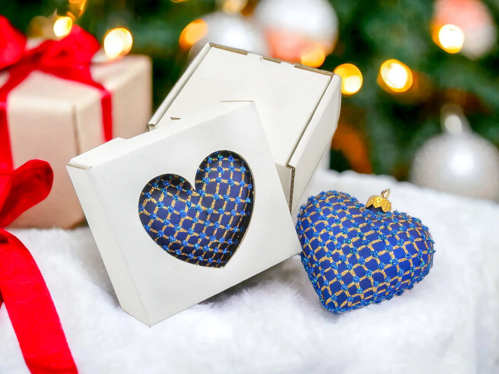 Bombka serce szafirowo złote - 8 x 7 cm bombka choinkowa szklana 1 szt