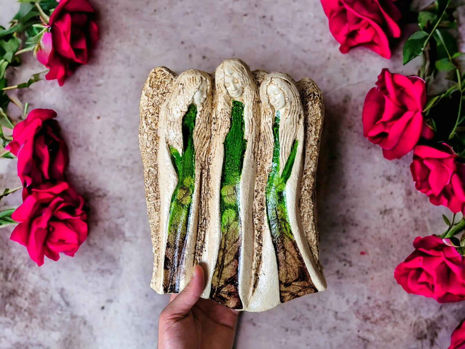 Anioł ze Skrzypcami - zielony -  25 x 33 cm figurka dekoracyjna gipsowa