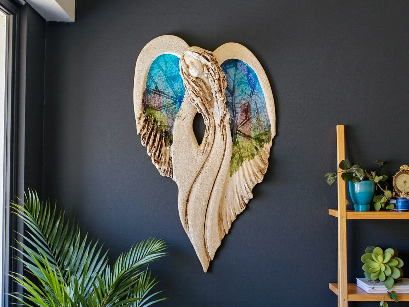 Zakochane Anioły + ramka - wiszące srebrno turkusowe - 35 x 21 cm figurka dekoracyjna gipsowa