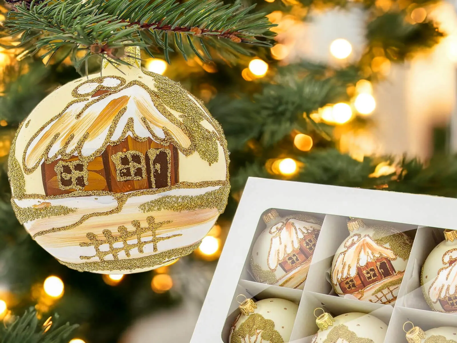 Bombki złote chatki wanilia - 100 mm bombki choinkowe szklane 6 szt
