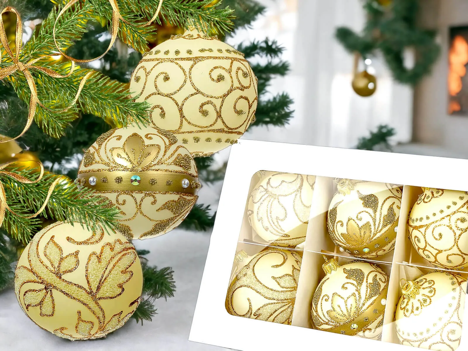 Bombki złoty mix Królewski na wanilii - 80 mm bombki choinkowe szklane 6 szt