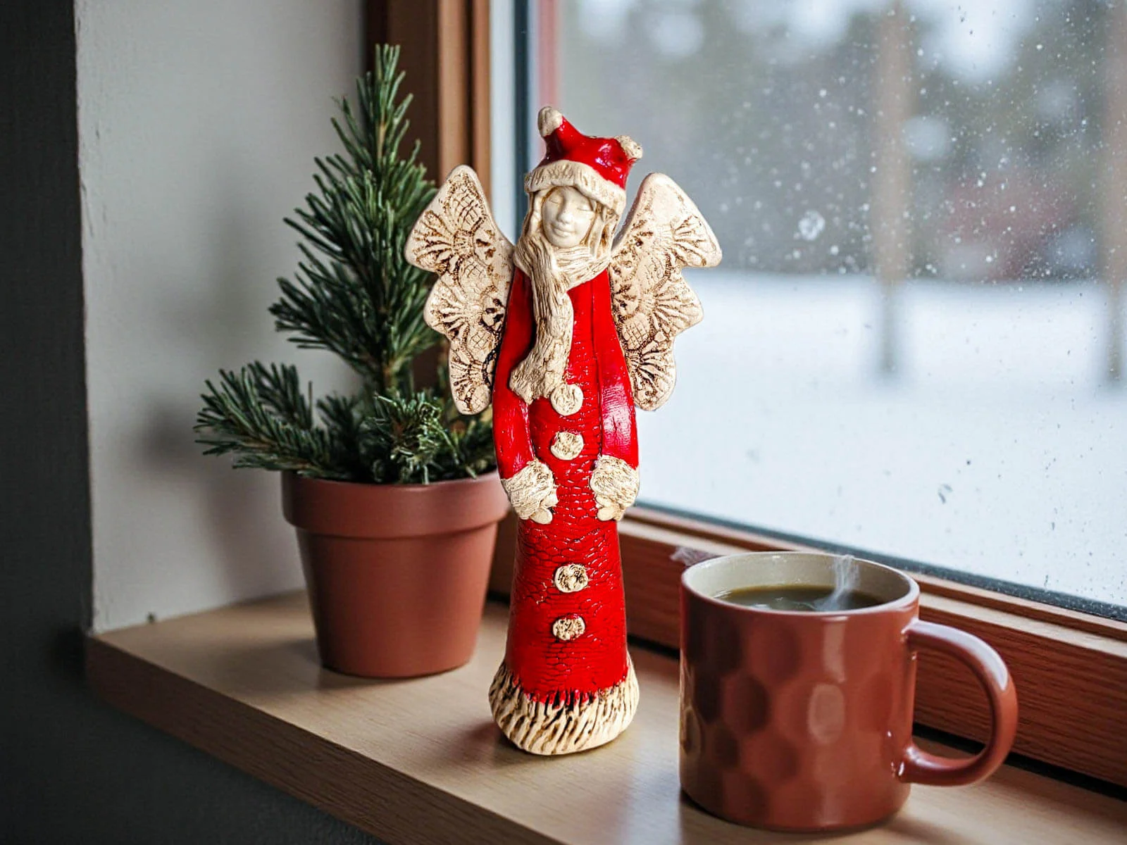 Anioł Bieszczadzki - czerwony - 30 x 14 cm figurka dekoracyjna gipsowa