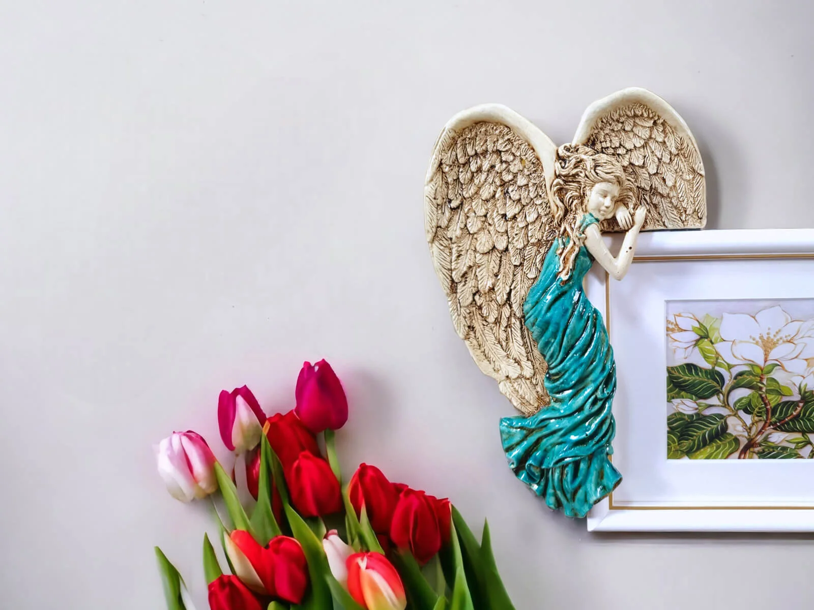 Anioł Andrea - turkus lewy -  19 x 11 cm figurka dekoracyjna gipsowa