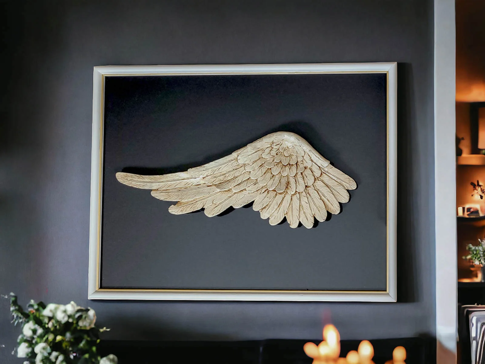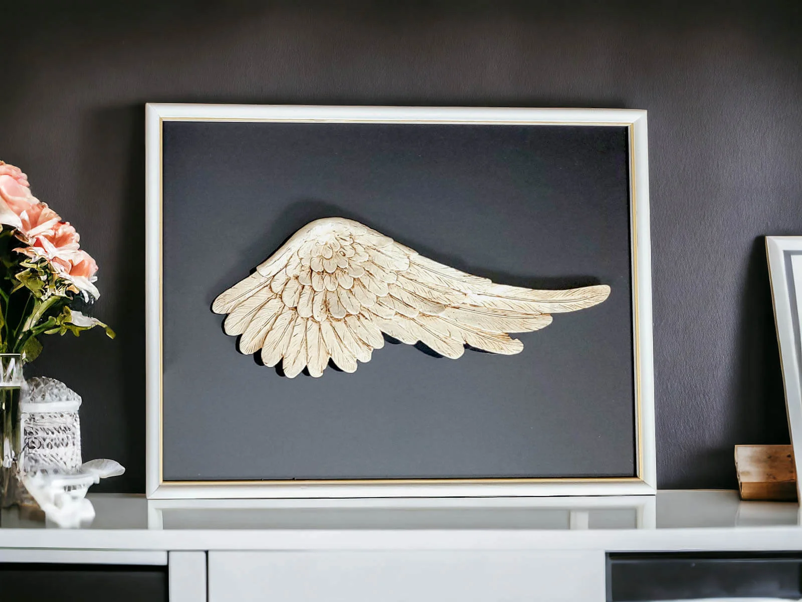 Lewe Skrzydło Anioła + ramka - ciemna - wiszące -  30 x 40 cm figurka dekoracyjna gipsowa