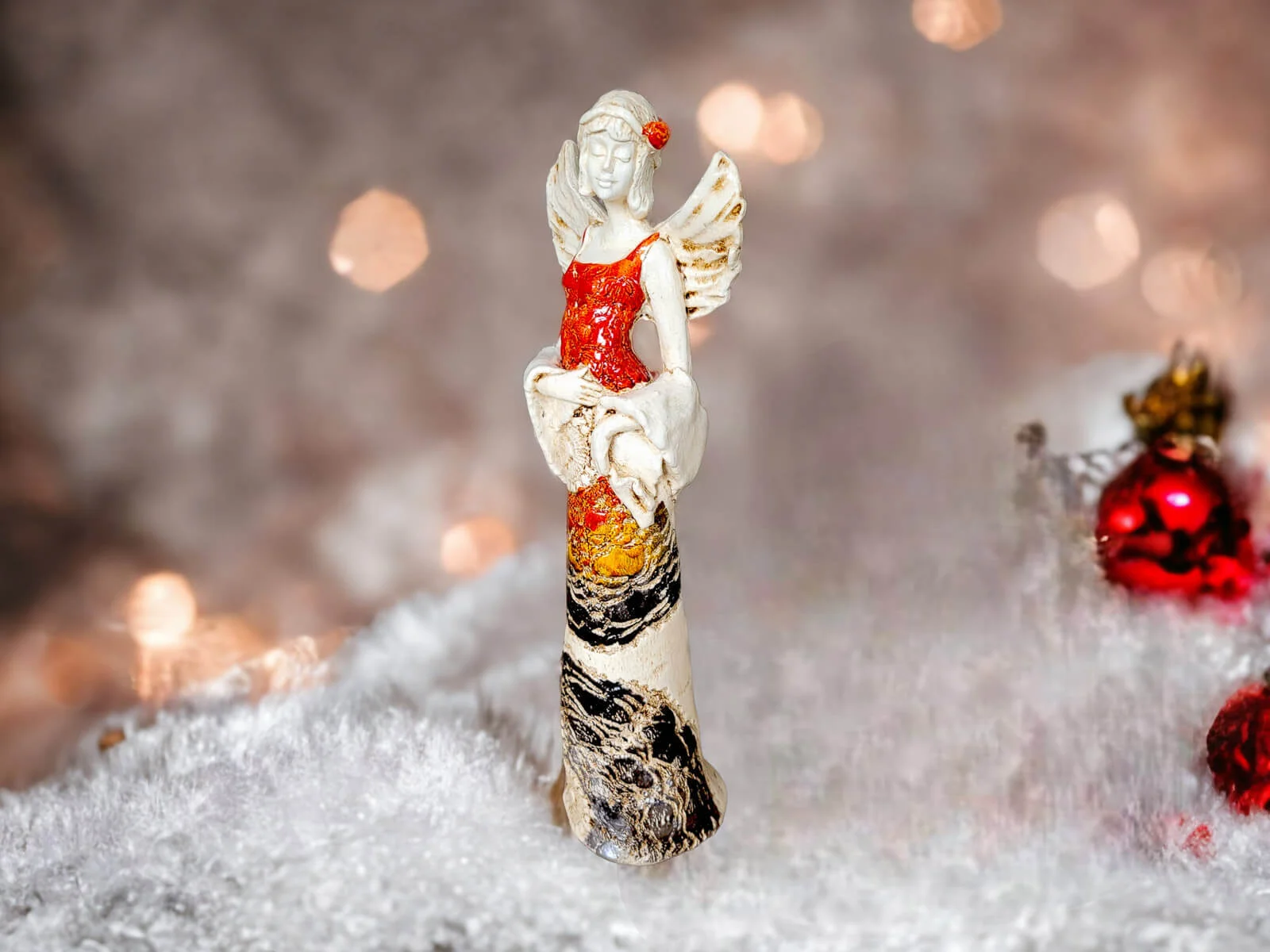 Anioł Sunday Rose - czerwony - 32 x 15 cm figurka dekoracyjna gipsowa